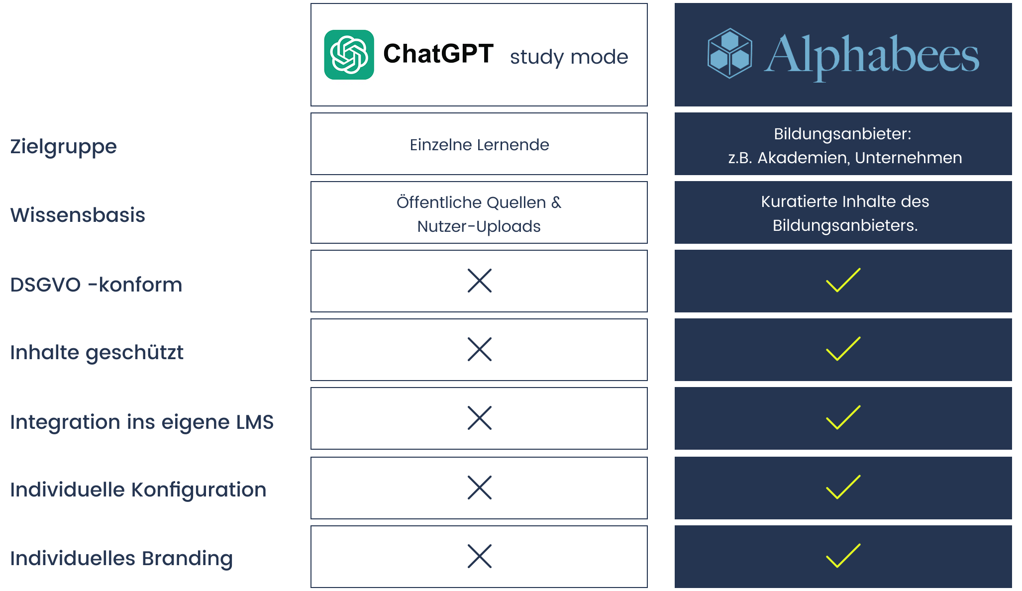 Vergleich ChatGPT study mode vs. Alphabees AI-Tutor