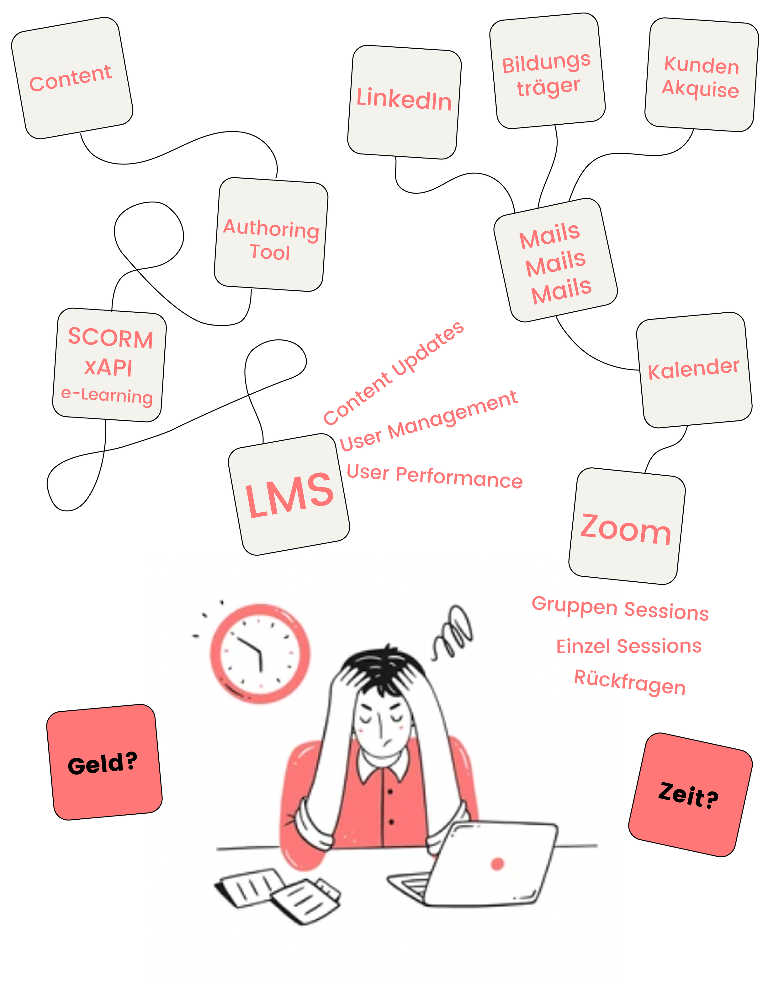 Doch die Realität sieht oft anders aus. Viele jonglieren mit einer Vielzahl von Tools, um Inhalte zu erstellen, zu verwalten, Termine zu koordinieren und Zahlungen abzuwickeln.