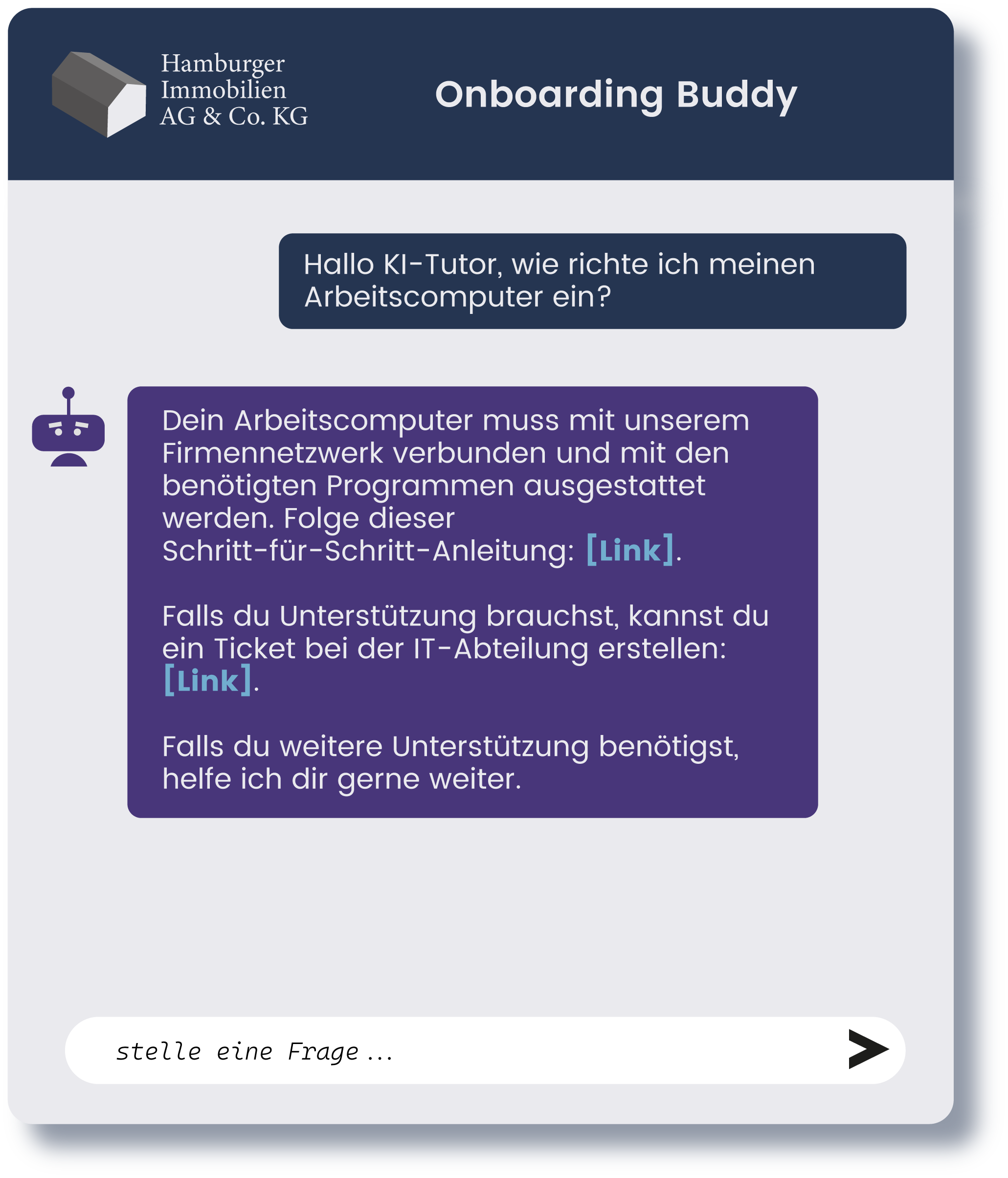 Der KI-Tutor bietet neuen Mitarbeitern individuelle Unterstützung, ermöglicht schnellen Zugriff auf wichtige Informationen und entlastet so die HR-Abteilung für einen effizienten, skalierbaren Onboarding-Prozess.